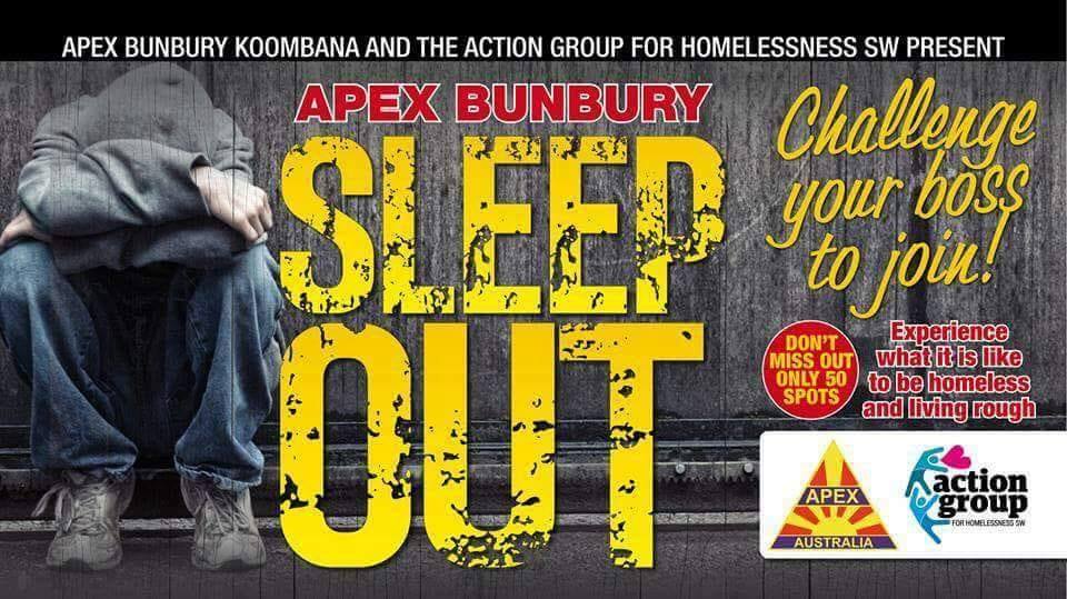 Join us for our third annual Apex Bunbury Sleep Out on August 3-4.